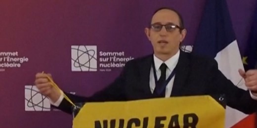 Protesters interrupt Macron during nuclear summit00:17