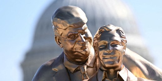Group puts up statue of Trump and Epstein in ‘Titanic’ pose00:32