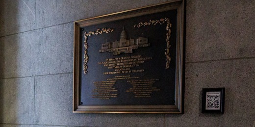 Plaque installed to honor police response for Jan. 6 riot00:27