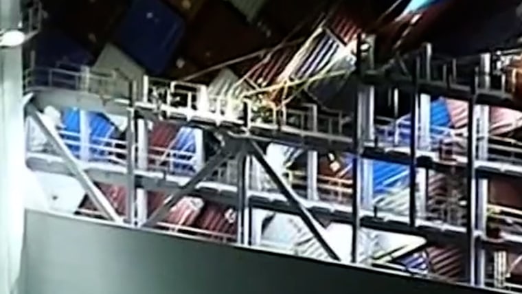 Containers at risk of falling from ship in Long Beach00:16