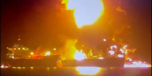 Two oil tankers catch fire after Iranian attacks in Iraqi waters00:35