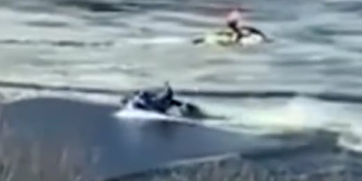 Jet skiers appear to get stuck on icy river in Boston00:16