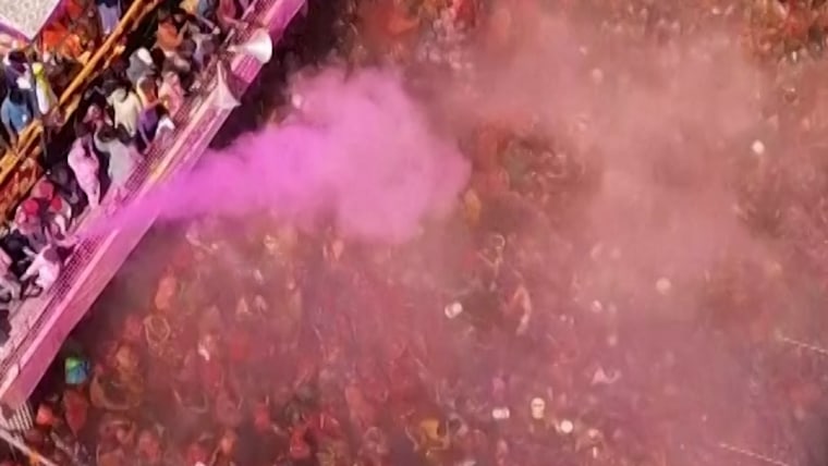 Thousands gather to celebrate Huranga Holi in India00:31
