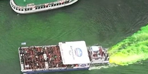 Time lapse shows Chicago River getting dyed green00:19